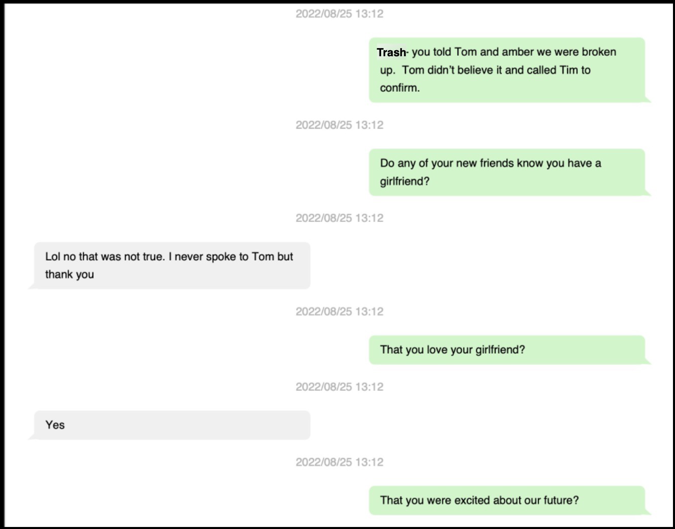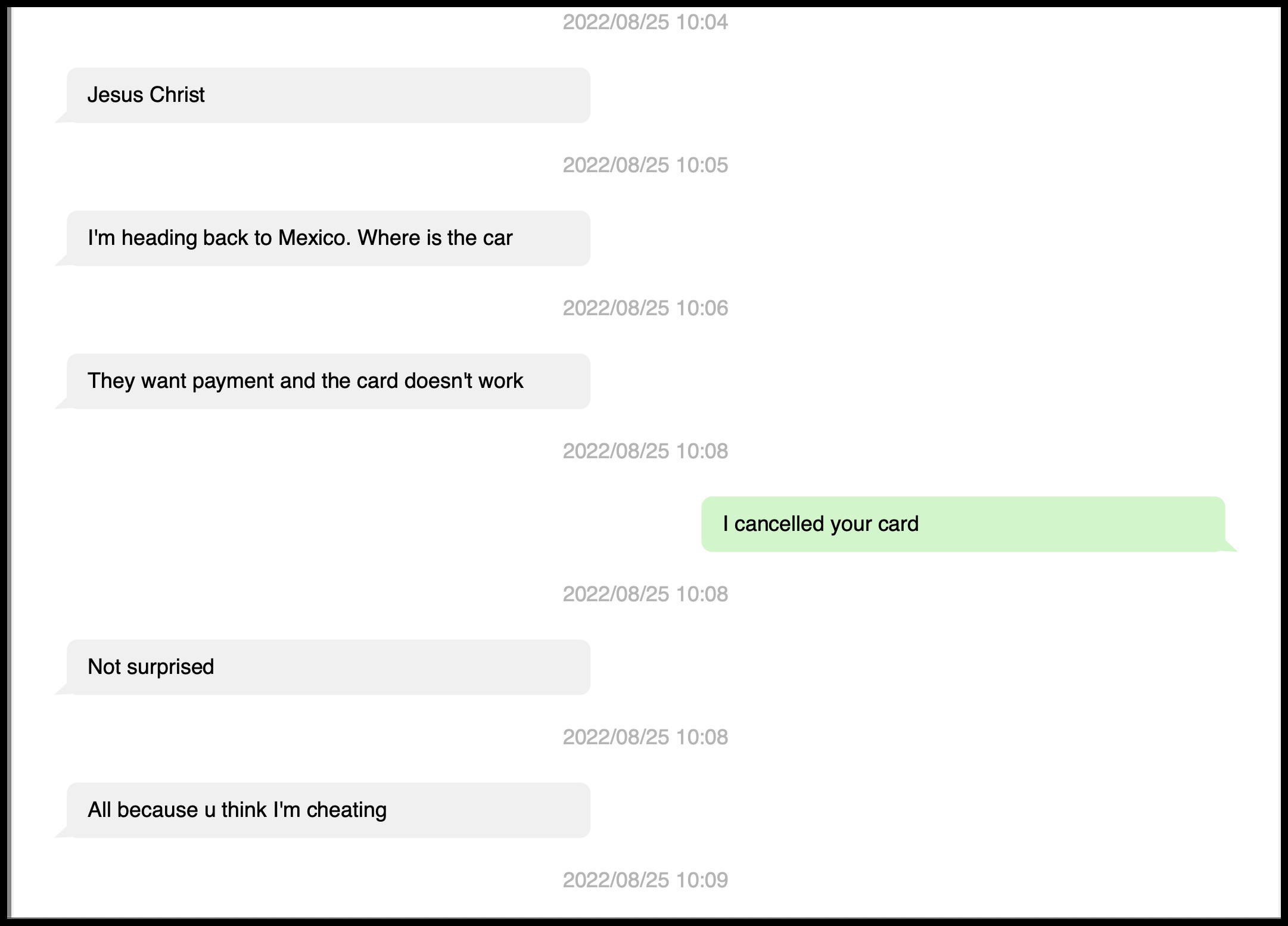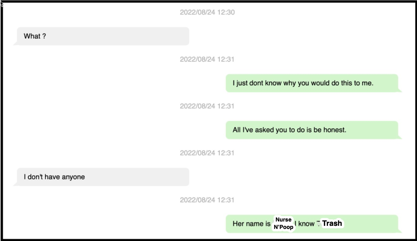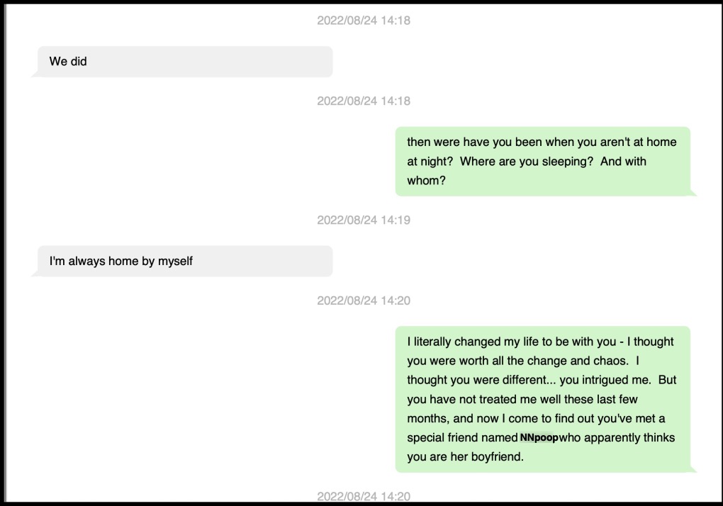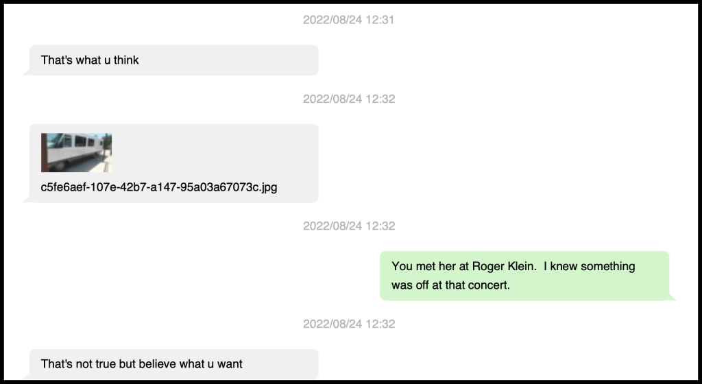 All in all, they were together until late 2022. Yes, you read that correctly. The entire time I was in a relationship with Trash, he and Lola were still talking, texting, and having sex. The ENTIRE TIME. He told me she was crazy and that he had to block her, he did not do that. He continued to see her, wine and dine her, sleep with her – at my house, in hotels, in Mexico. Did she know about me? Yes she did. And she did it anyway. This is the hardest for me understand – how another woman does another woman like this. I will post about this later, for now, we are going on Lola’s journey of theft and deception with Trash.