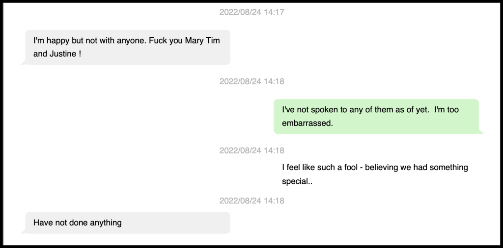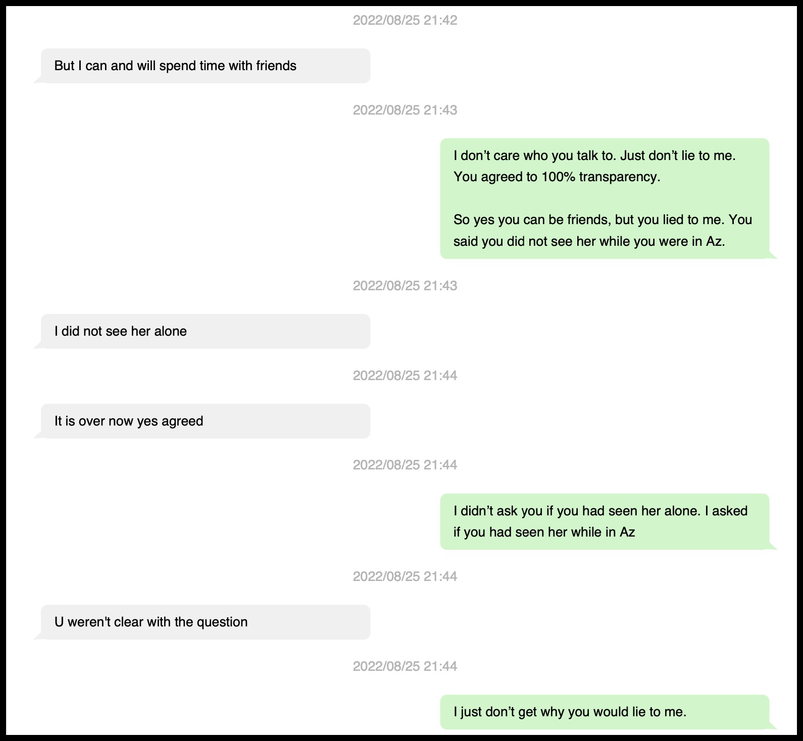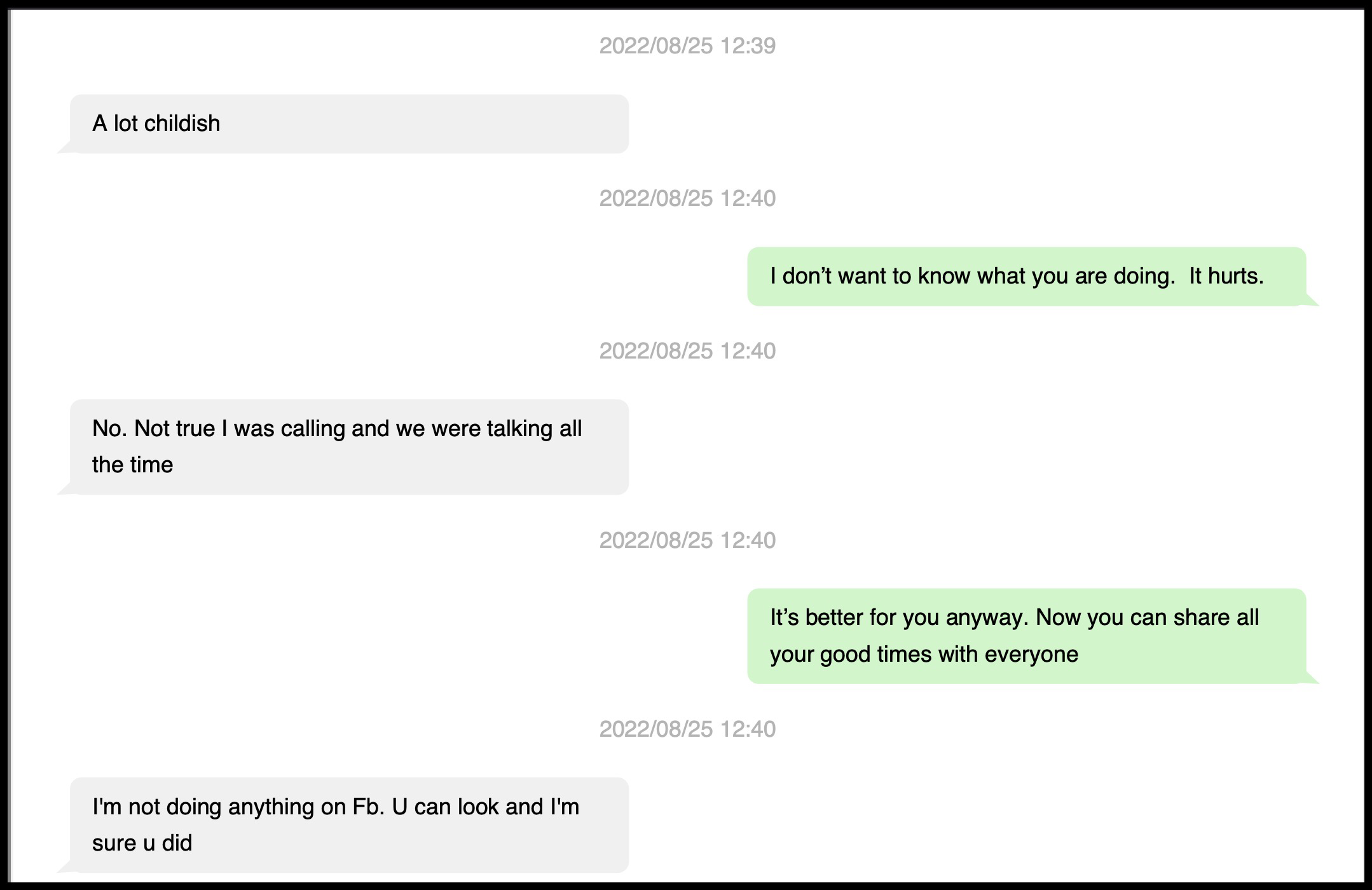 August 2022: The shattering discovery of deception led to my decision to part ways, documented in raw and emotional posts here and here.