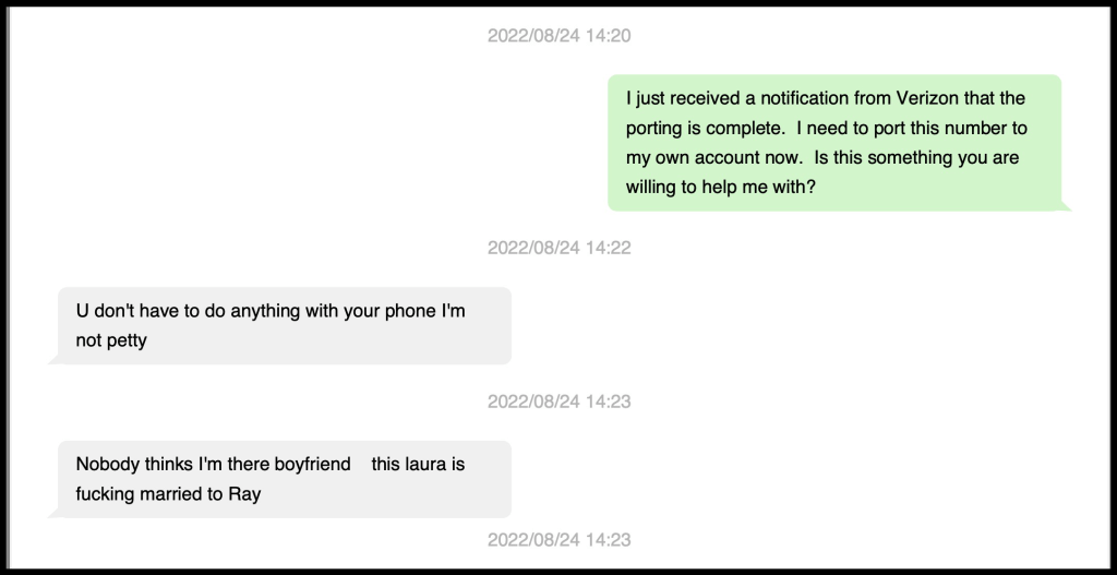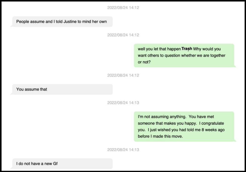 August of 2022 is when CPS took over the care of Gabe. Ex-Wife finally got the courage to cut off communication with Trash and would no longer answer the phone. Trash’s only communication method at the moment is Email, so the abuse is minimum as he knows it is documented and can be used against him.