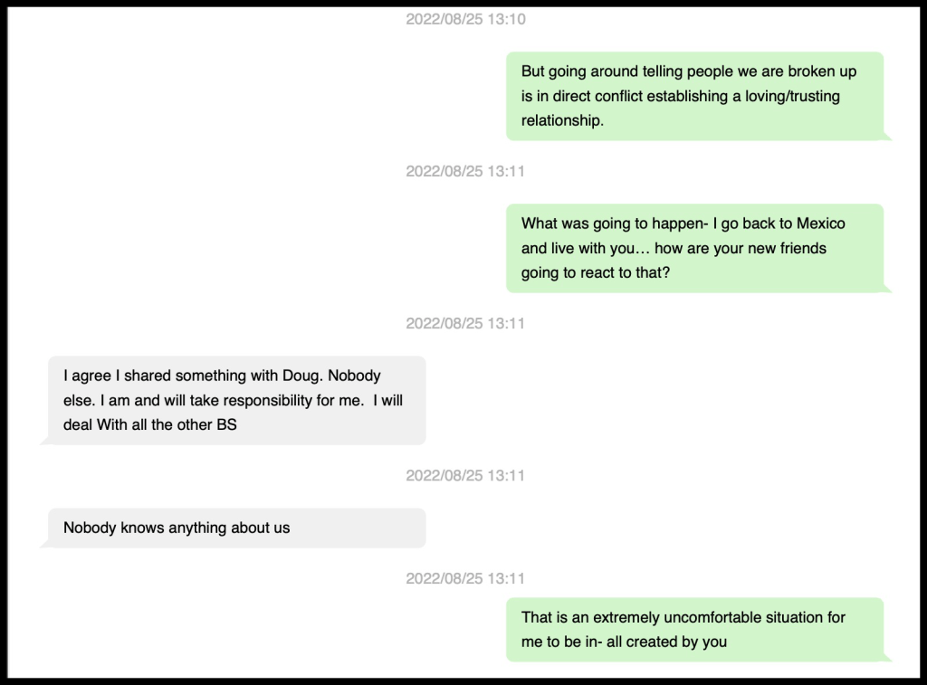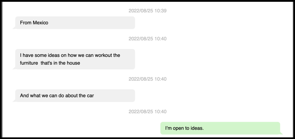 Where do I even begin. When they were together, she purchased and sold her home turned airBnB. Together they moved the contents of her airBnB to Mexico – first to the Mirador townhouse, then into the home that he purchased right before I met him – The Costa Diamante house. He sold her the same dream he sold me – that they would live together in Mexico in that house. She believed him. When he started dating me in April 2021, she realized they would not be together in Mexico and that she wanted her stuff back.