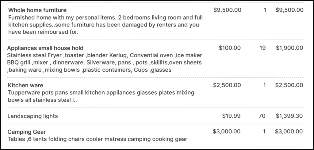 Each item I had paid for. And I was forced to repurchase everything, forcing me to suspend renting the home until I could get it back to a rentable condition, thus significantly impacting me financially.