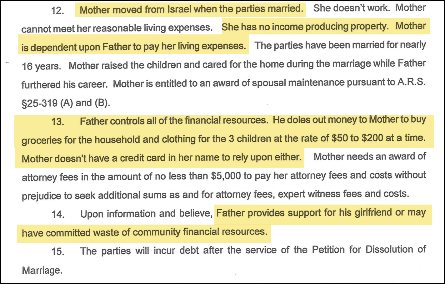In May 2015 she filed for divorce after an abusive episode. She told me she was very scared – Trash told her she would be deported if she divorced him. He had already moved out of the house and was living with his then girlfriend Betsy. This is an excerpt from her 2015 Petition for Divorce: