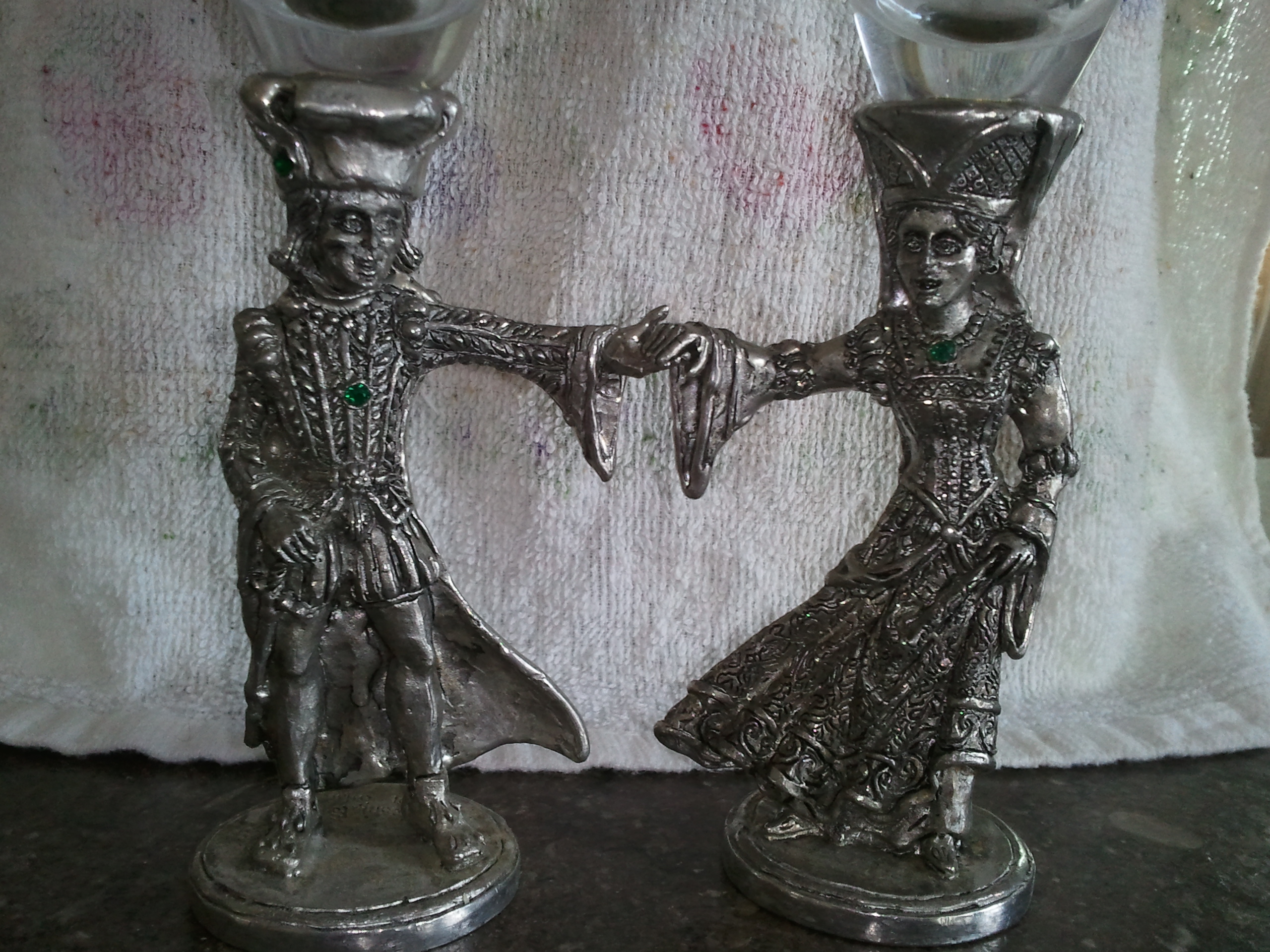 BUT, today I spent the day unpacking, and look at the fancy little number I came across… yes, you see correctly, a set of pewter champagne glasses … holding hands (see how the holding of hands creates a heart…. awwwhhhh so cute!). I know at the time I thought this was very special, because they are NOT and have NOT been prominately displayed in any home I’ve lived in – they are still wrapped up tight in their original box.